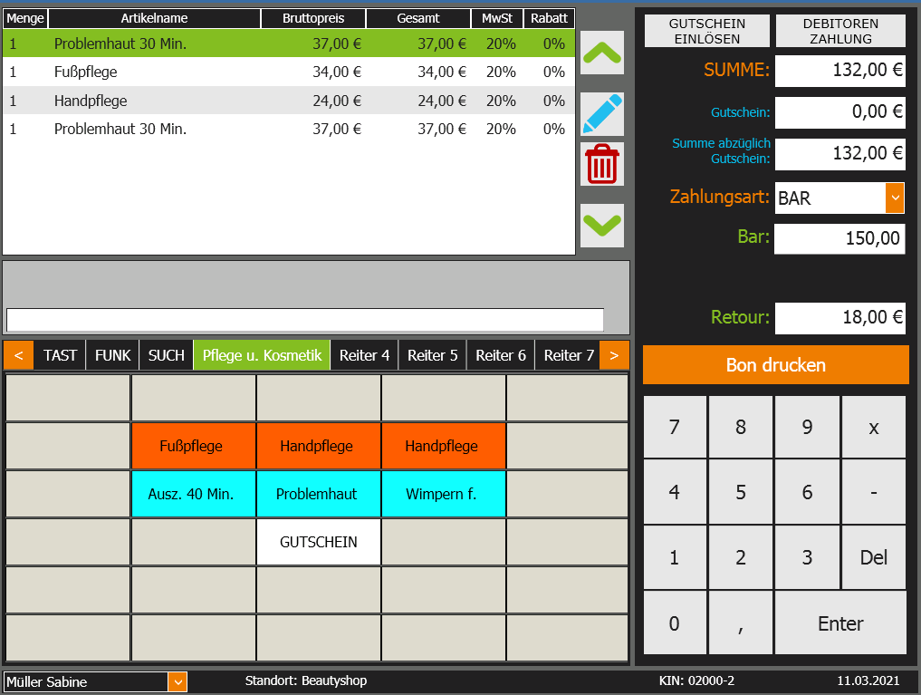 Einfache und rasche Erfassung der Leistungen, eventueller zusätzlicher Produkte, uvm.