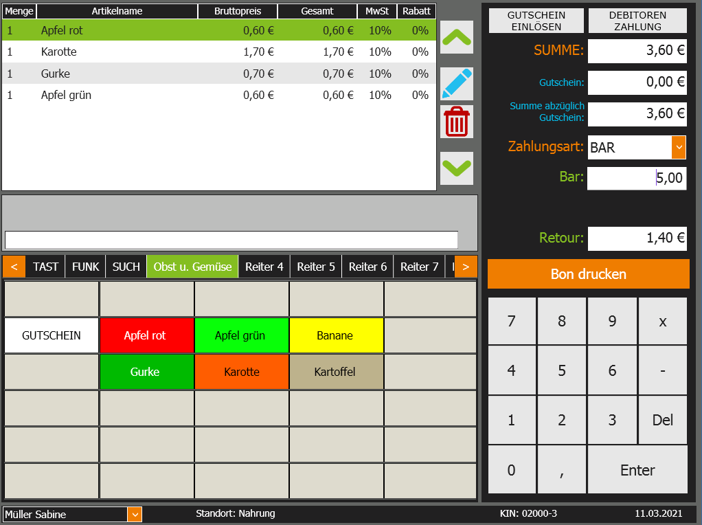 Kein kompliziertes Kopfrechnen beim Retourgeld, beschleunigt den Verkauf