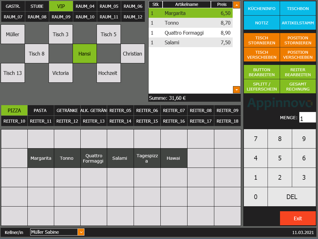 Durch unsere langjährige Erfahrung im Registrierkassen- bzw. Kassensoftware-Bereich haben wir Appinnovo mit einer Vielzahl an nützlichen und wichtigen Funktionen ausgestattet, die Sie im täglichen Einsatz unterstützen und Ihre Arbeit bzw. die Ihrer MitarbeiterInnen erleichtern.